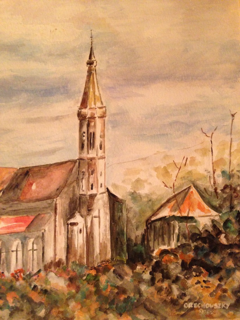 A festmény sajátos szemszögből nyújt rálátást a soproni Szent Mihály templomra és környékére. Régi képeslap ihlette.